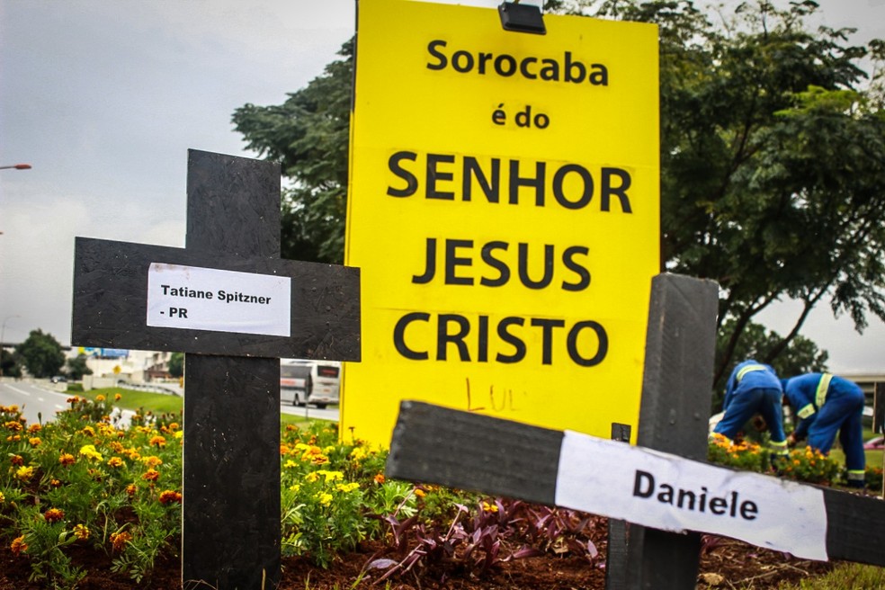 No Dia das Mulheres, manifestantes fixam cruzes em diversos pontos de Sorocaba