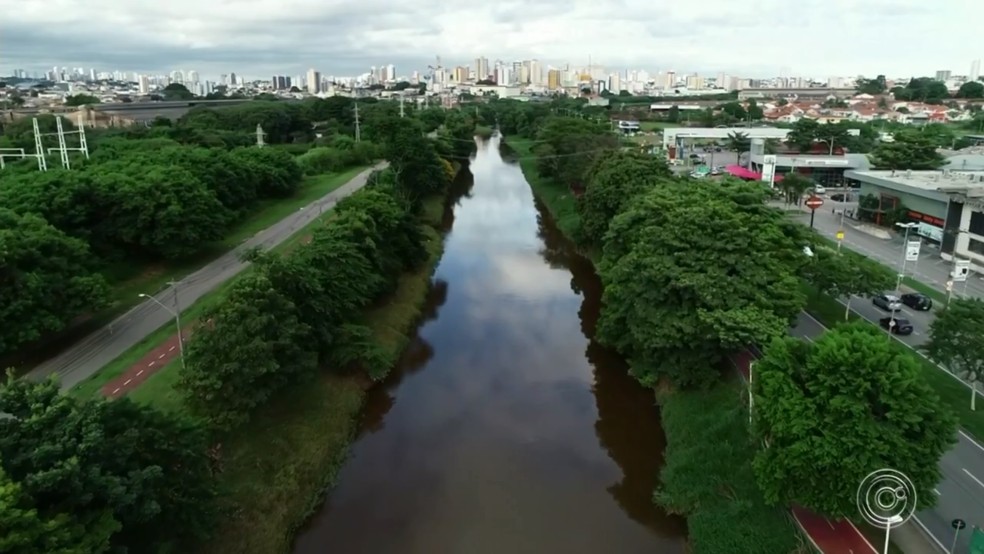 Rio Sorocaba no trecho de Sorocaba — Foto: Reprodução/TV TEM