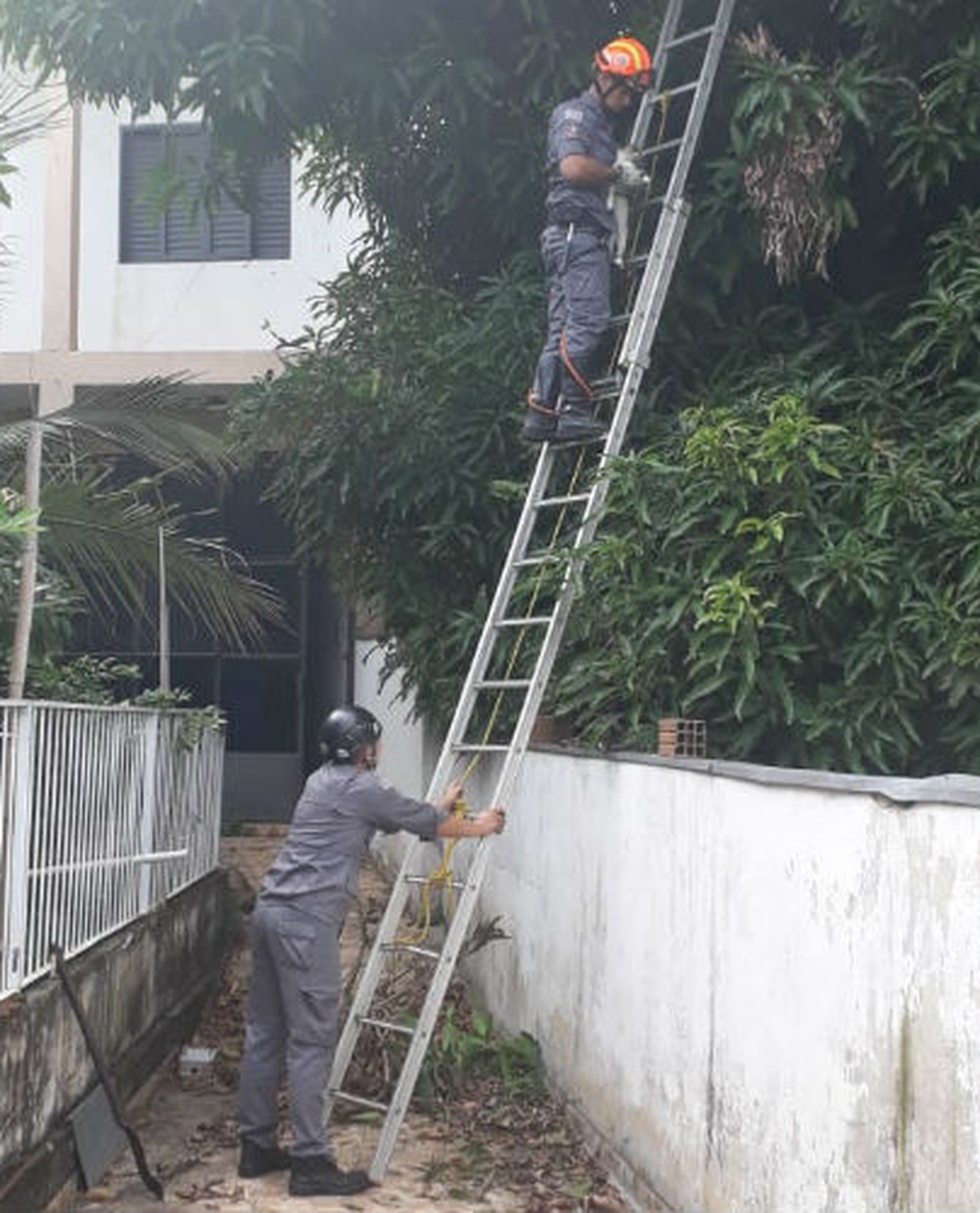 'Operação especial' mobilizou dois bombeiros e durou cerca de uma hora. Bichinho foi devolvido aos donos sem lesões aparentes e deve passar por consulta veterinária.