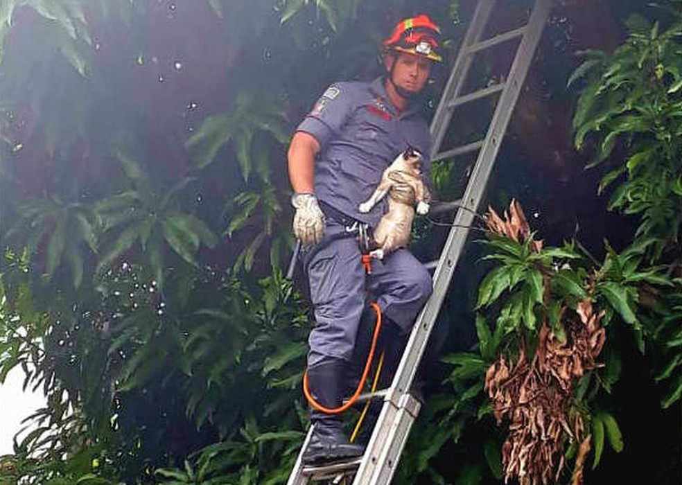 O resgate, que envolveu um caminhão dos bombeiros e dois profissionais, foi finalizado com sucesso por volta das 10h. Sem nenhuma lesão aparente, o gatinho foi devolvido aos donos e deve passar por uma consulta veterinária.