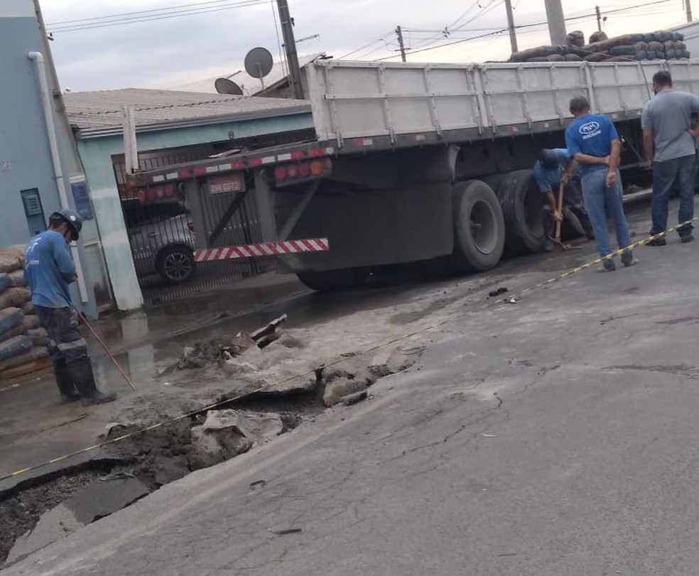 Um caminhão foi "engolido" por um buraco que se abriu no Jardim São Lucas, em Votorantim (SP), na tarde desta quinta-feira (23). Ninguém ficou ferido.