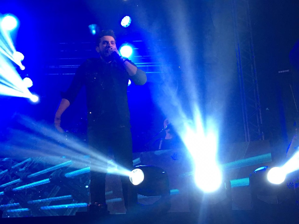 Gustavo Mioto cantou no primeiro dia da Festa Junina de Votorantim — Foto: Natália de Oliveira/G1