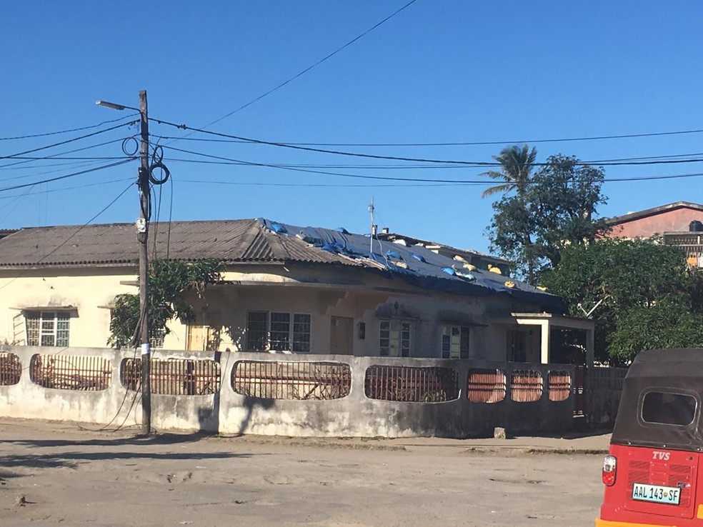 A casa da família do namorado, o moçambicano Ismael José Bacar, desabou com a força do vento e todos tiveram que se abrigar no imóvel de um vizinho.