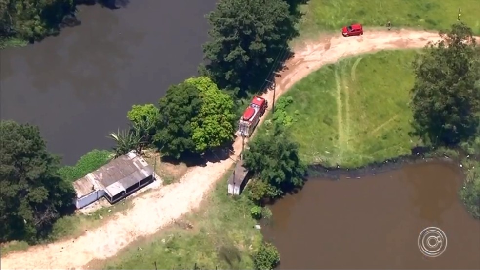 Bombeiros fizeram buscas no local onde Leonardo teria desaparecido — Foto: TV TEM/Reprodução