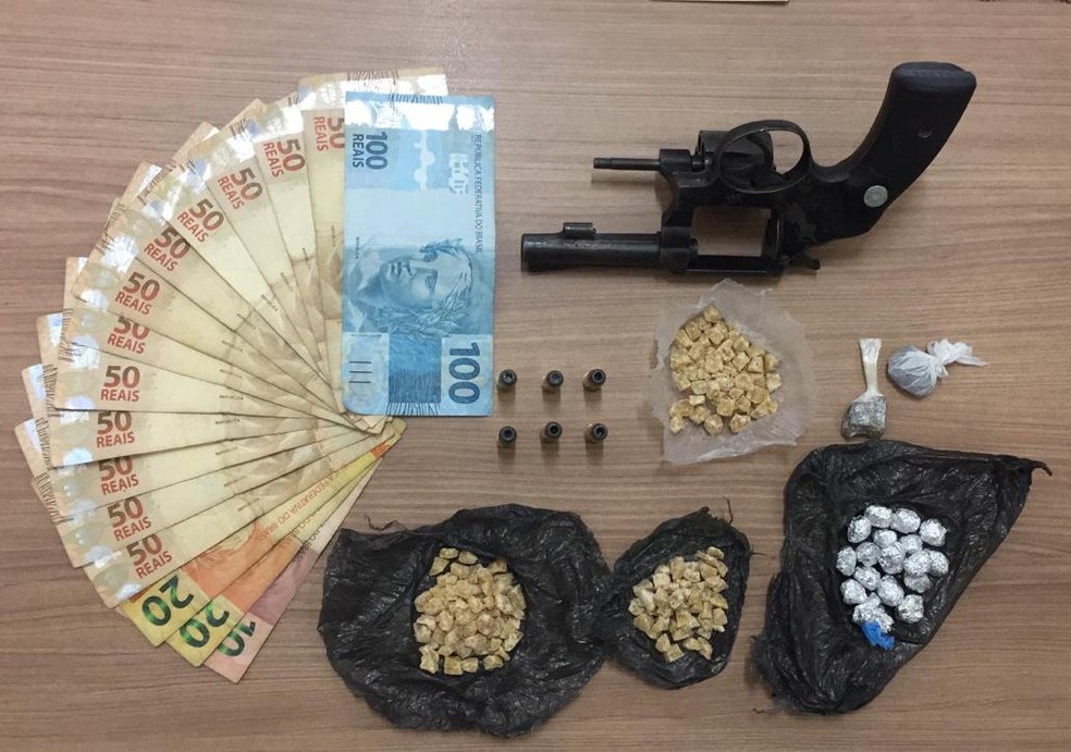 Drogas, dinheiro e arma foram apreendidos pela polícia — Foto: Arquivo pessoal