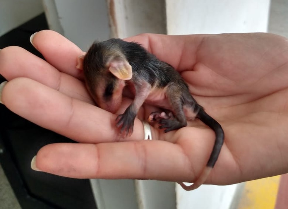 Morador de Votorantim (SP) encontrou filhote de gambá no meio da rua — Foto: Arquivo Pessoal