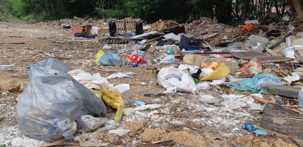 Moradores de Votorantim (SP) reclamam de terreno usado como lixão — Foto: Jomar Bellini/TV TEM