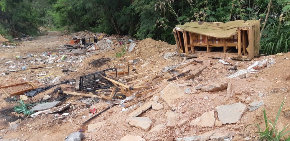 Móveis são jogados em terreno em Votorantim (SP) — Foto: Jomar Bellini/TV TEM