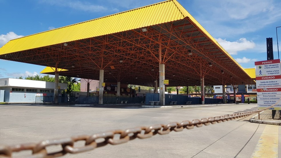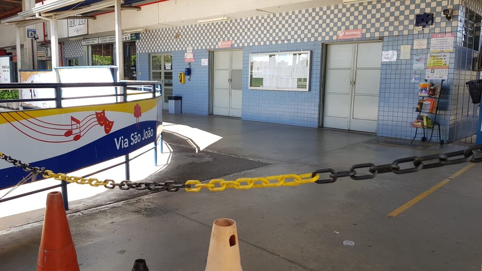 Sem circulação dos ônibus, terminal de Votorantim foi fechado no sábado (18) — Foto: Jorge Silva/Gazeta de Votorantim
