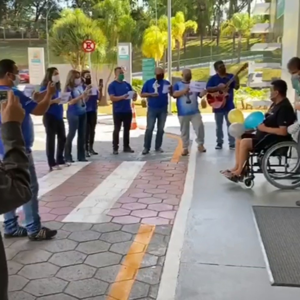 No dia da alta, funcionários fizeram um corredor e aplaudiram Claudinei enquanto ele saía do hospital. Na parte de fora, amigos, usando máscaras, cantaram a canção “Seguindo em Frente”, de Almir Sater, para homenagear.