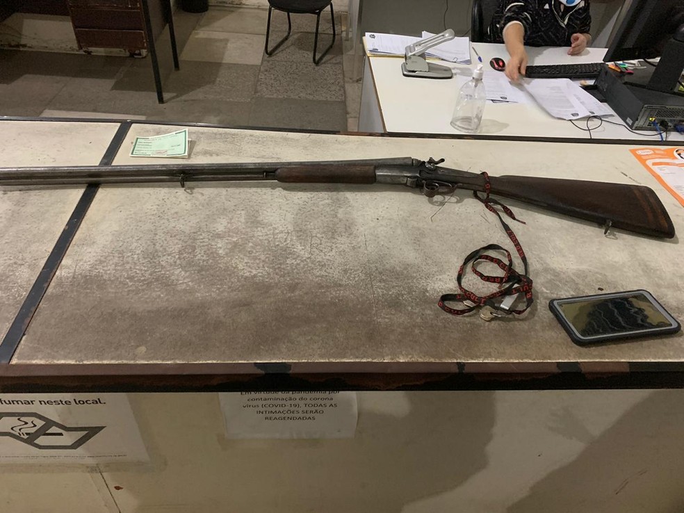Arma usada no crime foi apreendida pela polícia em Votorantim (SP) — Foto: Divulgação/Polícia Militar