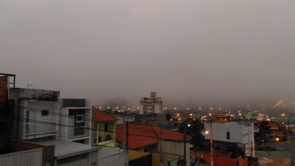 Já em Votorantim (SP), o G1 registrou uma imagem da área central "coberta" pelo nevoeiro.