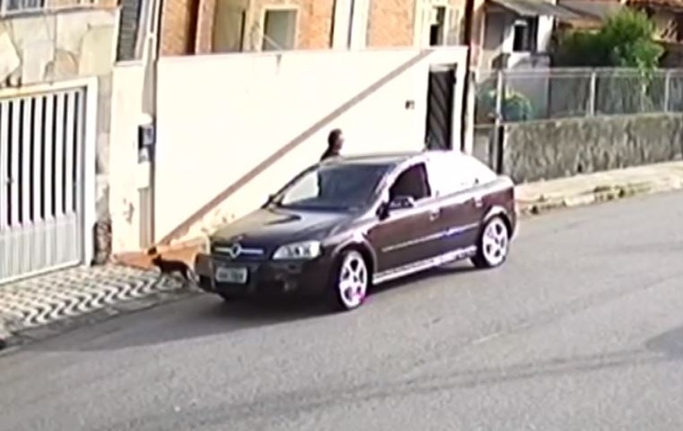 O vídeo ainda mostra que a cadela tentou correr atrás do carro, mas depois desiste.