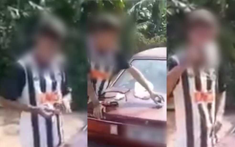 Nas imagens, é possível ver que o jovem está ao lado de um carro e com uma sacola plástica aberta com as porções de maconha. Em seguida, transtornado, o pai faz o filho comer pedaços com a ajuda de um copo d'água (veja abaixo).