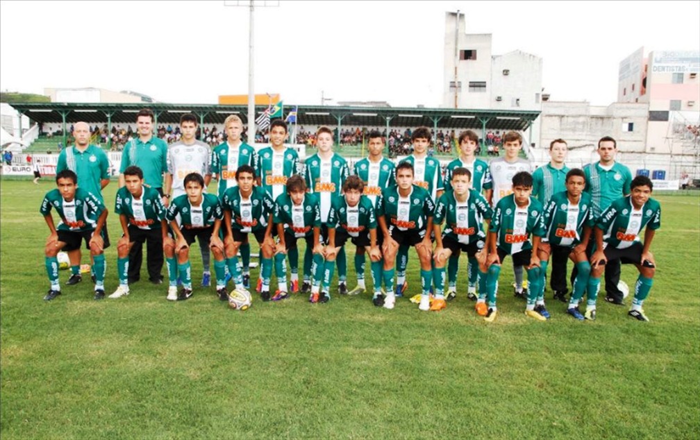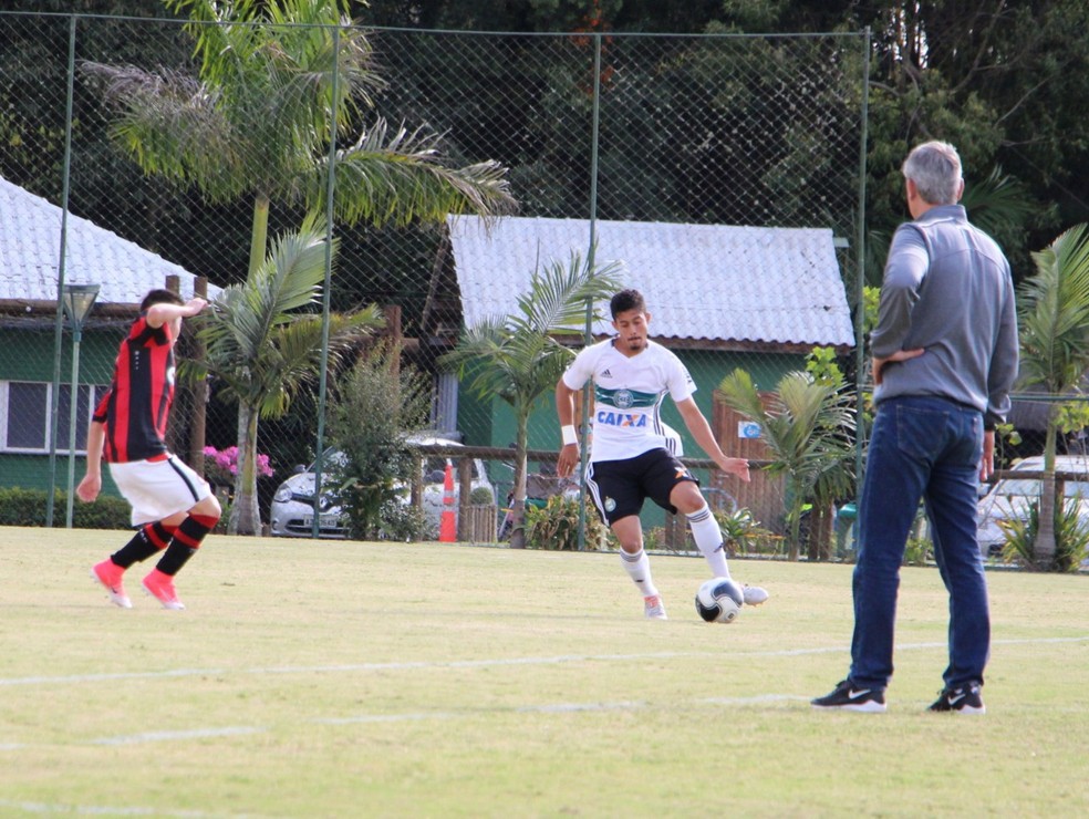 Gustavo Mosquito, à direita do jogador com a bola nos pés, na base do Coritiba — Foto: Divulgação