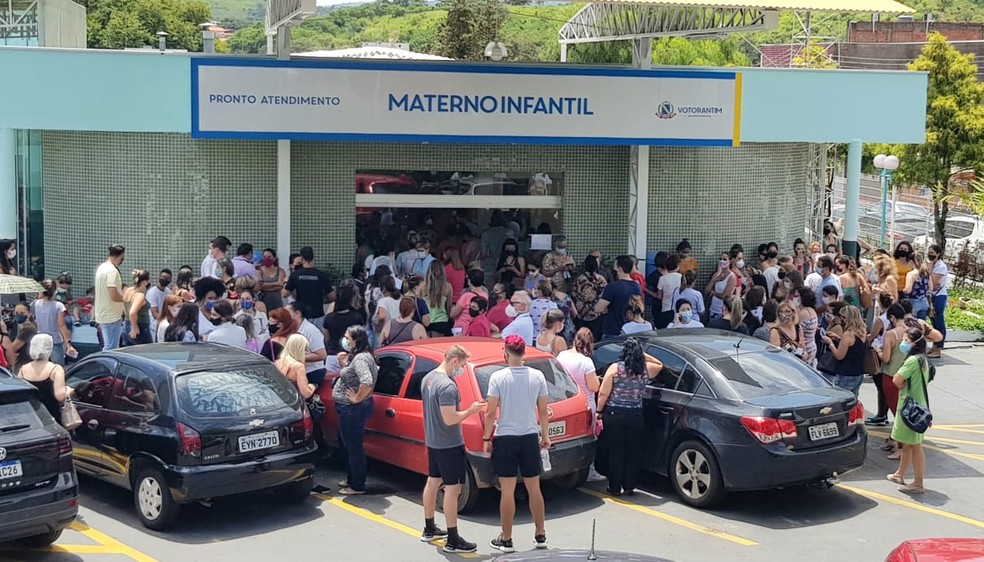 Aglomeração foi flagrada em frente ao PA Materno Infantil de Votorantim — Foto: Jorge Silva/Gazeta de Votorantim
