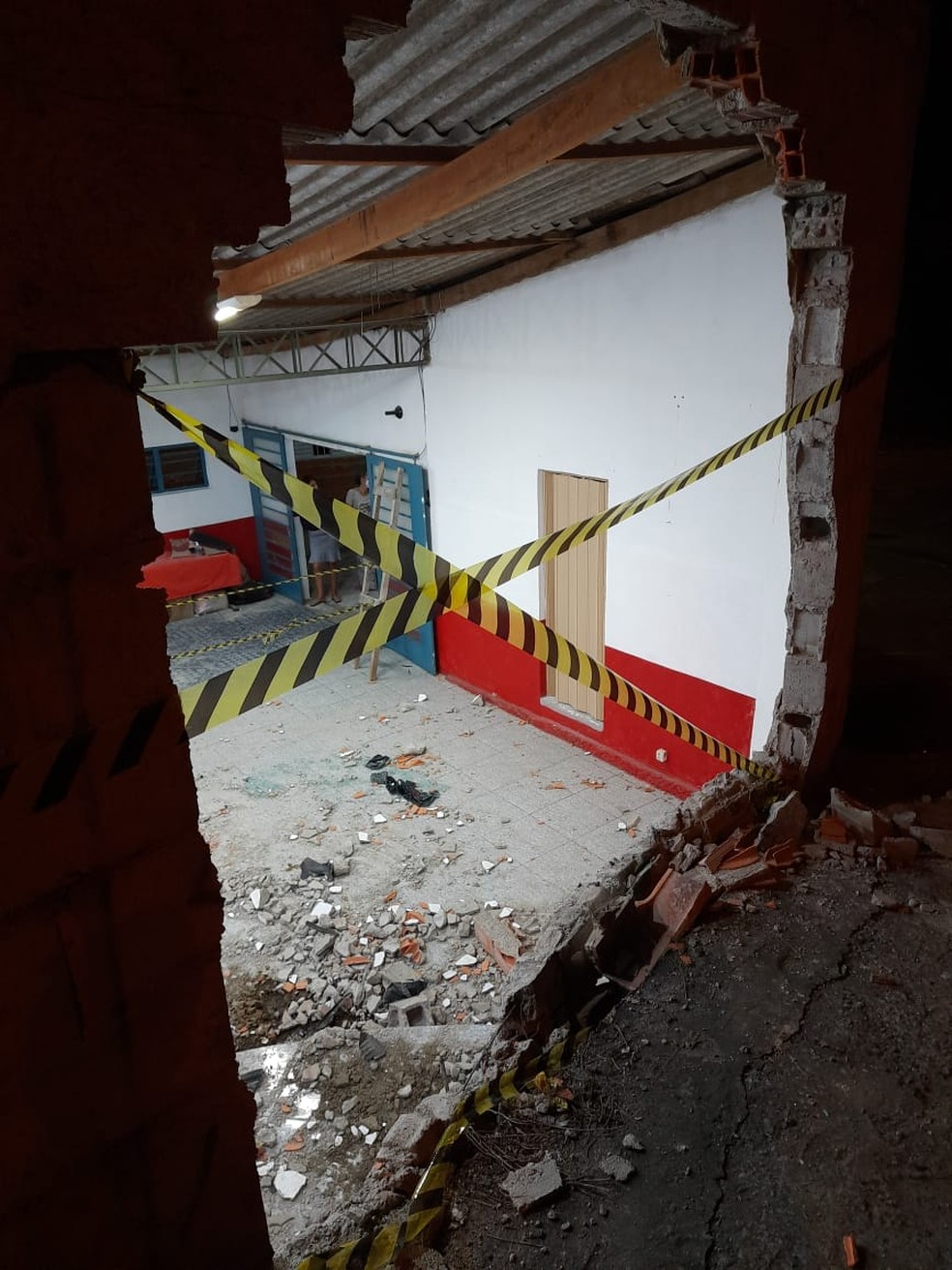 "Foi livramento. O lugar destruído é bem no altar, onde as pessoas ficam em pé ou sentadas em cadeiras. O impacto destruiu caixas de som, cadeiras e a parede. Graças a Deus, só prejuízo material. A irmã que limpa geralmente está lá bem nesse horário", diz.