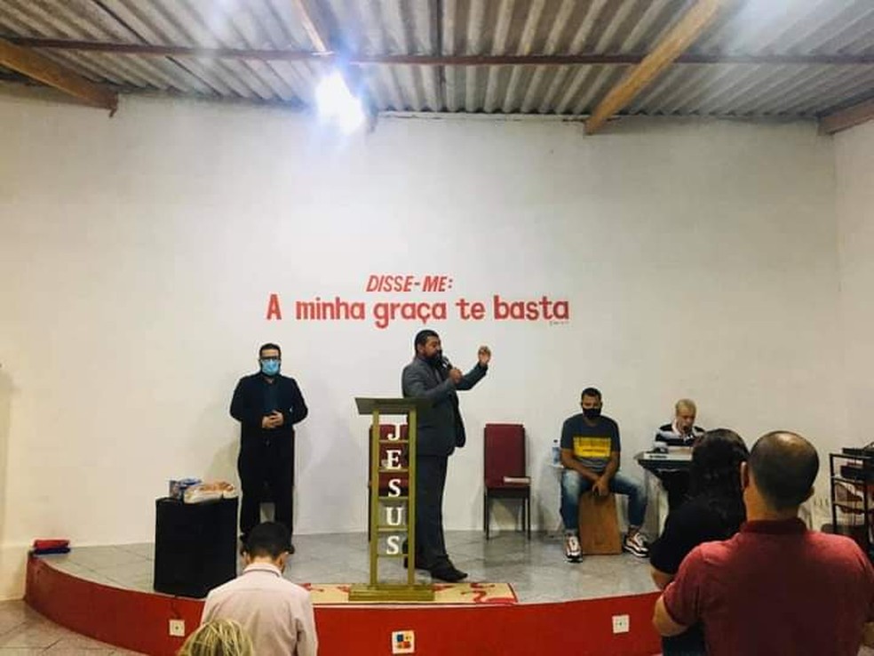 Altar da igreja em dia de culto em Votorantim — Foto: Arquivo pessoal