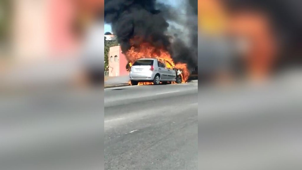 Um carro pegou fogo na Avenida 31 de Março, próximo da Rodovia Raposo Tavares, em Votorantim (SP), na tarde desta segunda-feira (19).
