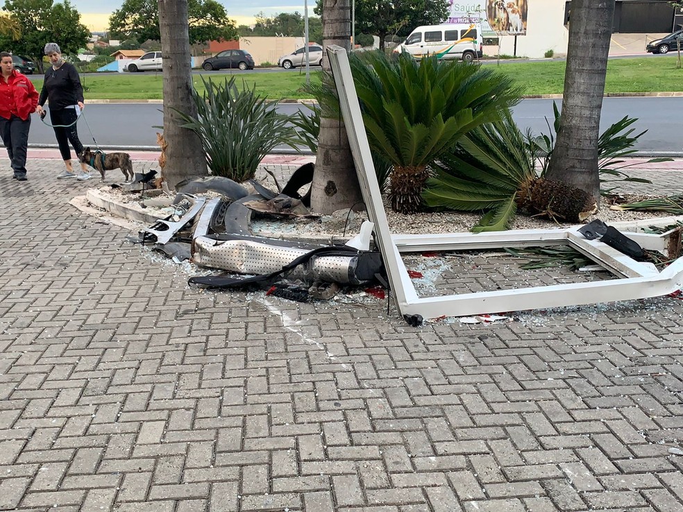 Totem de condomínio é atingido durante acidente entre três veículos em Votorantim — Foto: Arquivo pessoal