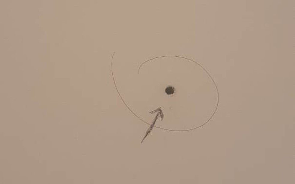 Marca de tiro em pilastra após assalto no Shopping Iguatemi — Foto: Arquivo pessoal
